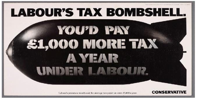 Clearly, tax is another area of historic brand weakness for Labour – and for parties of the left more generally. Any veteran of the 1992 election will likely recall the Conservatives’ notorious ‘Tax Bombshell’ poster of that year (see below), which some believe won John Major his surprise majority.